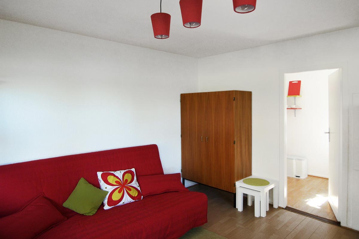 - Studio living/sleeping area with sleeper couch that converts to a double bed