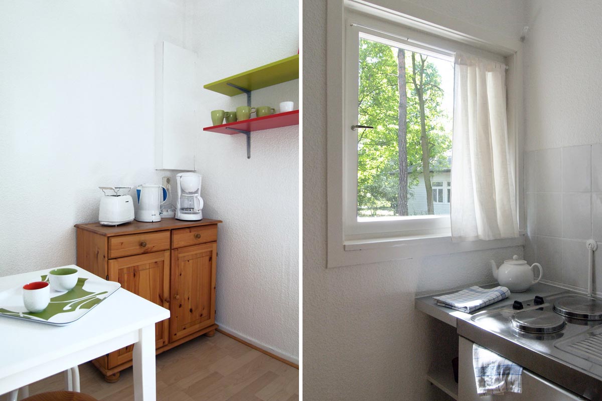 - Separate kitchen with stove, refrigerator, electric kettle, toaster, coffee machine