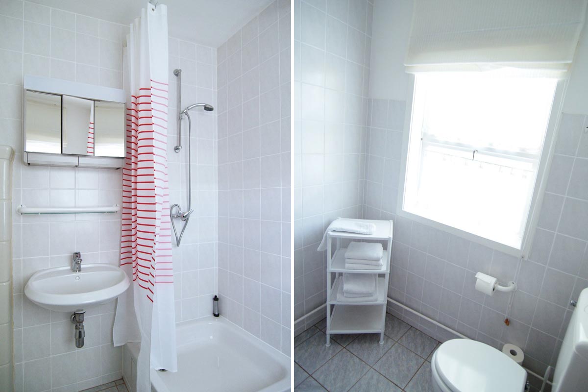 - Bathroom with shower and toilet